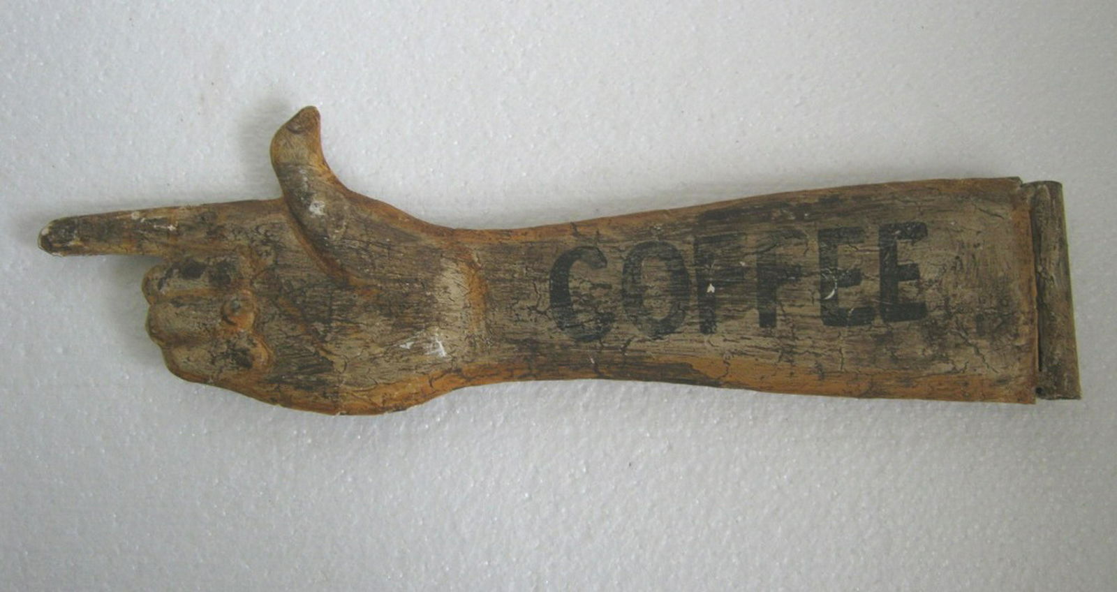 SoldHand direction COFFEE sign , ironIron hand direction COFFEE sign embossed . Size : 4.75 x 5.60 inch .See Sold Price