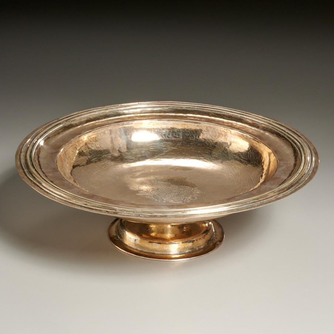 Hand-hammered silver heraldic footed bowl