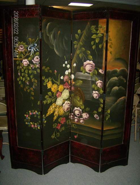 Hand painted 4 panel screen floral screen