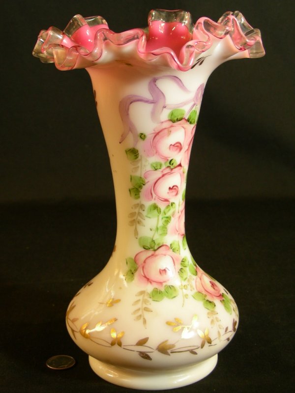 HAND PAINTED CASE GLASS VASE RUFFLE PATTERN ON TOP
