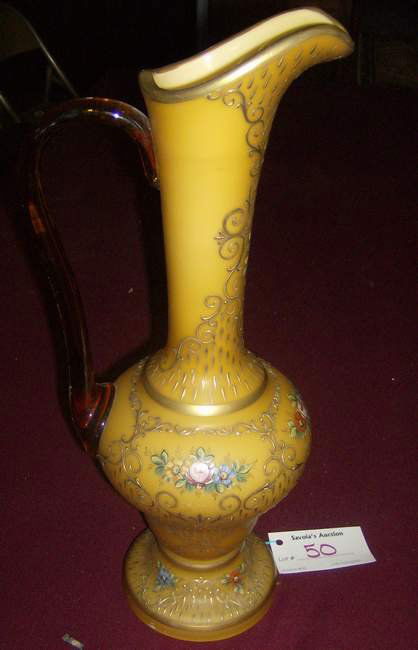 Hand Painted cased glass ewer
