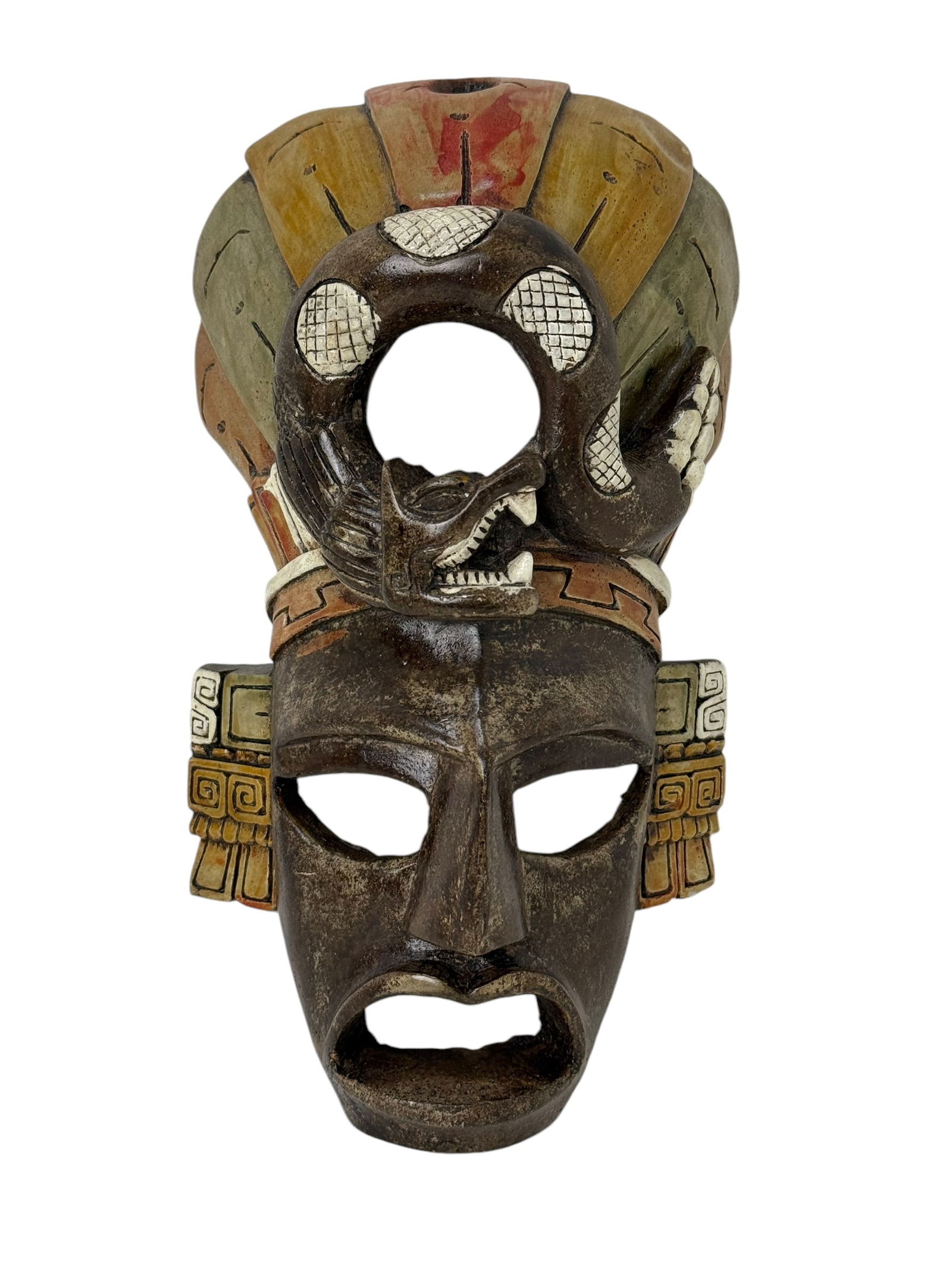Hand Painted Ceramic Mayan Warrior Mask