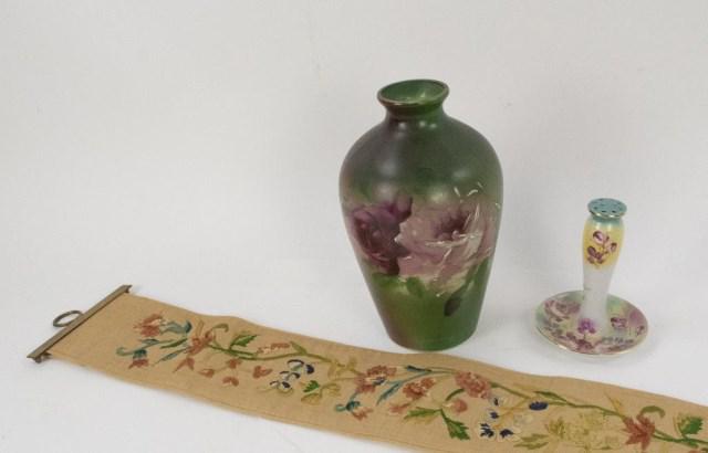 Hand Painted Hat Pin Holder & Vase, Bell Pull