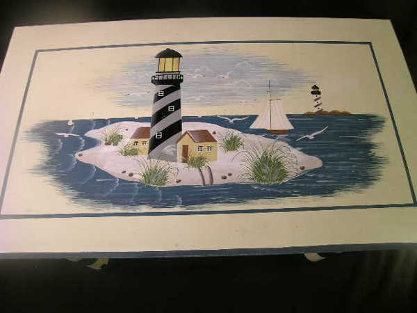 HAND PAINTED LIGHT HOUSE DESIGN SIDE TABLE