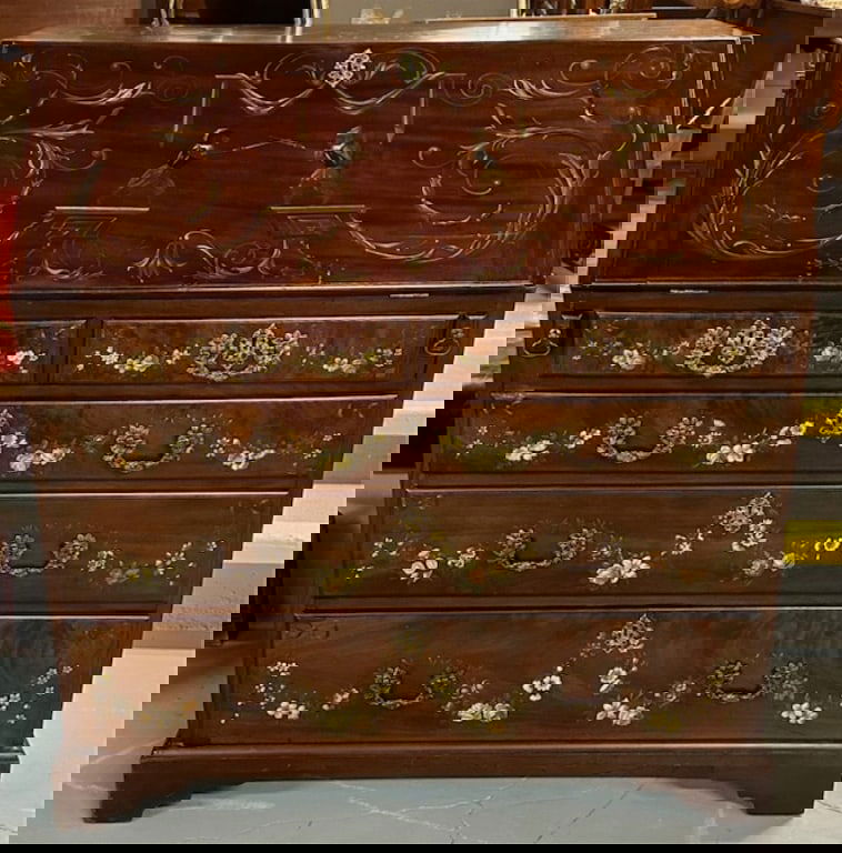 Hand Painted Mahogany Drop Front Desk