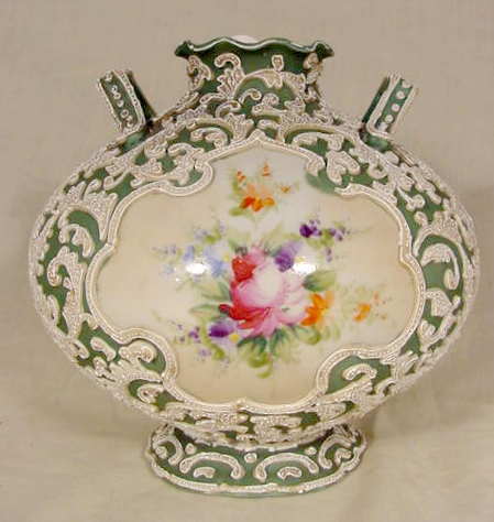 Hand Painted Nippon Moriage 2-Handled Vase NR