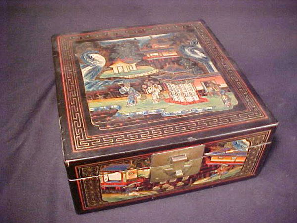 HAND PAINTED ORIENTAL LACQUER BOX 11 1/2