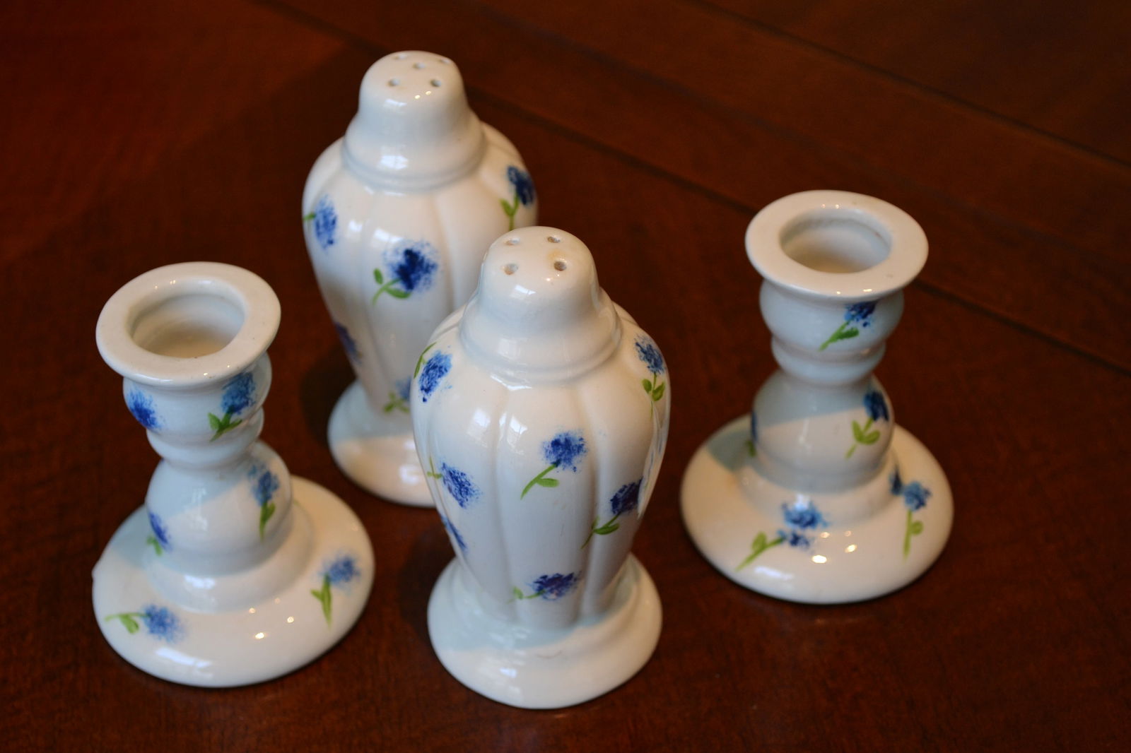 Hand Painted Salt & Pepper and Pair Candlesticks