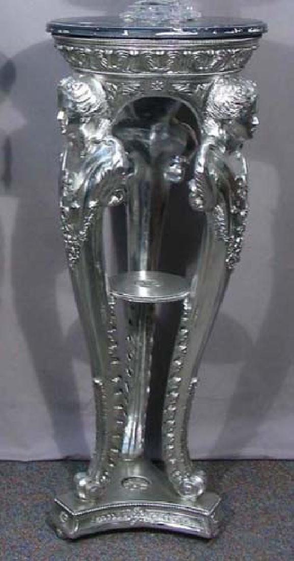 HAND PAINTED SILVER COMPOSITION FIGURAL PEDESTAL