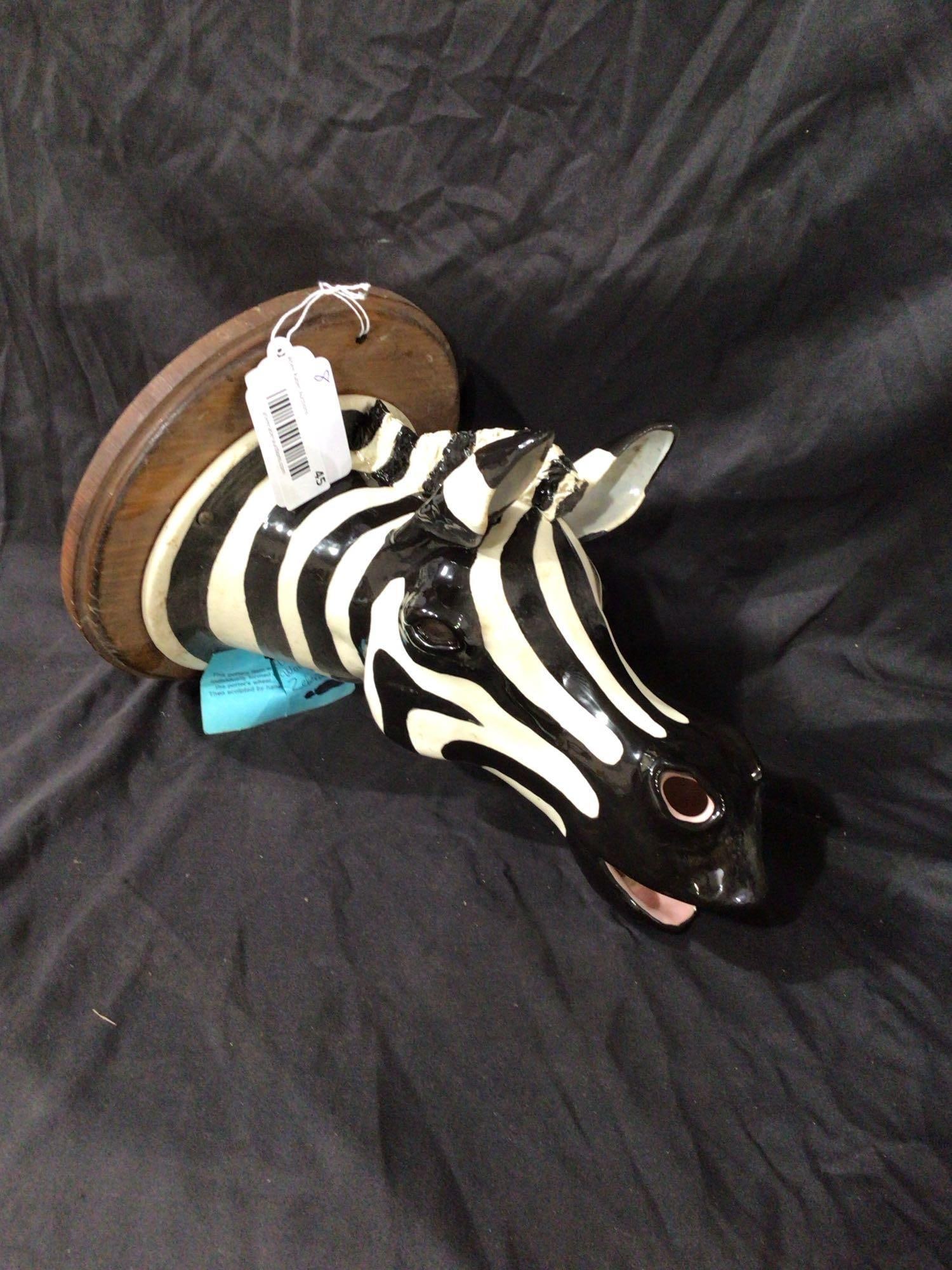 Hand sculpted zebra pottery wall mount