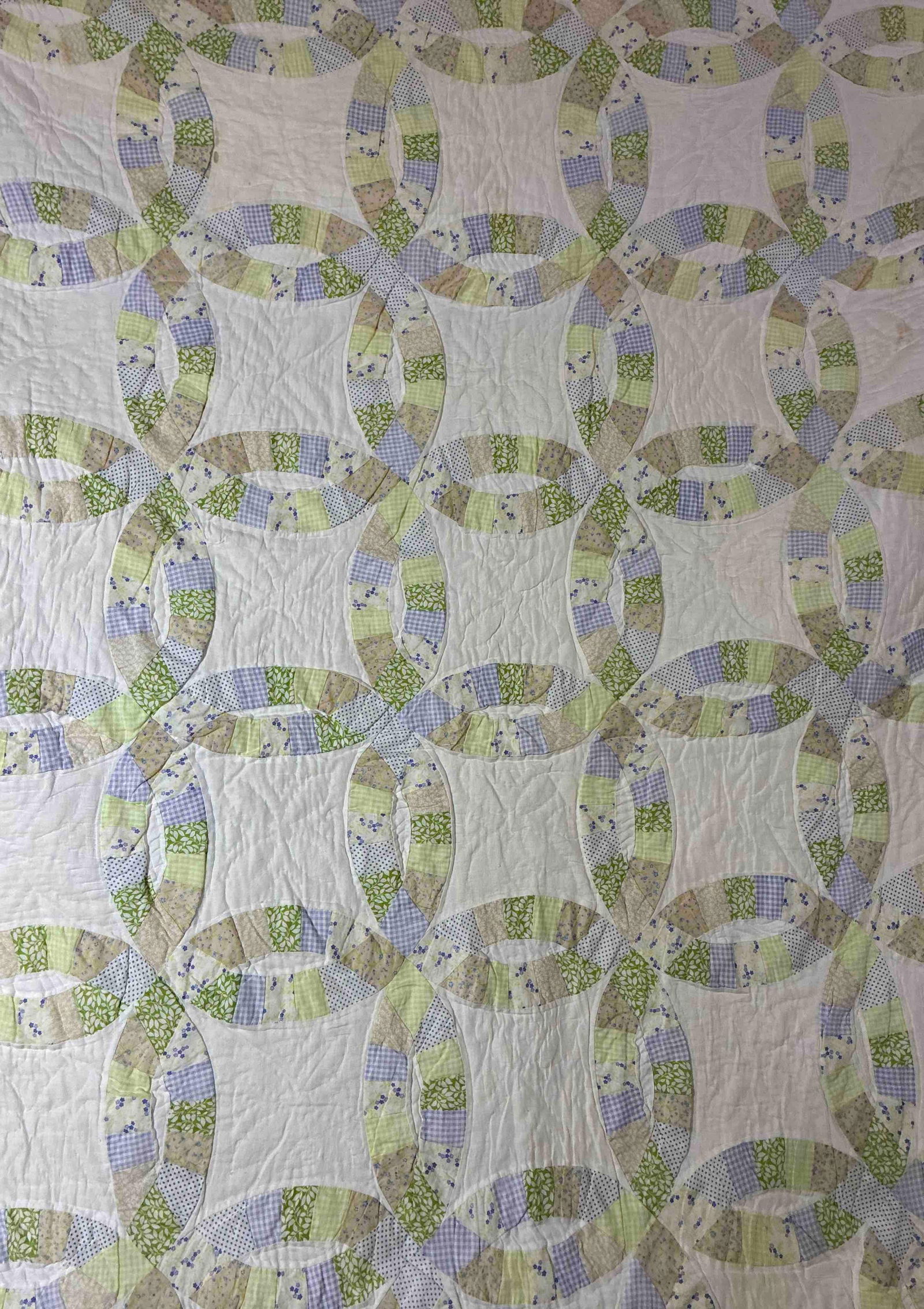 Hand Stitched Scalloped Edge Double Wedding Ring Quilt