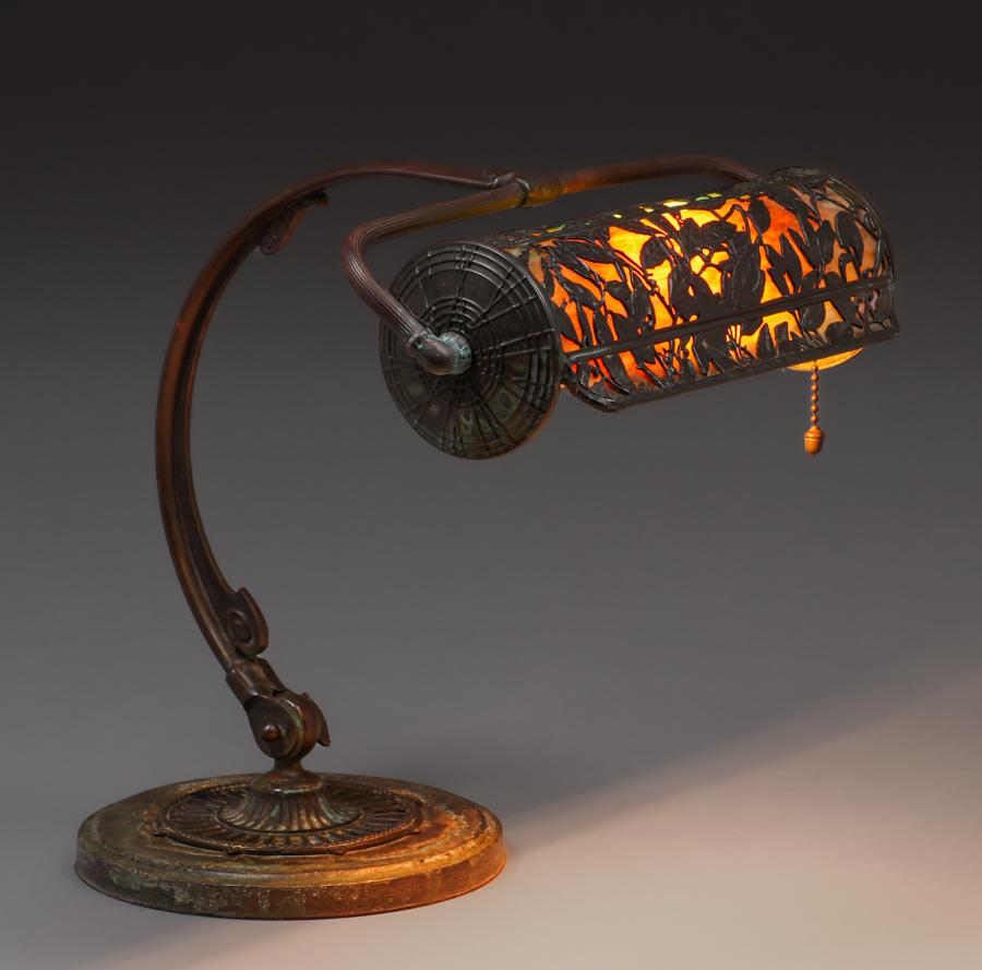 Handel Bamboo Leaf Overlay Desk Lamp c1910s