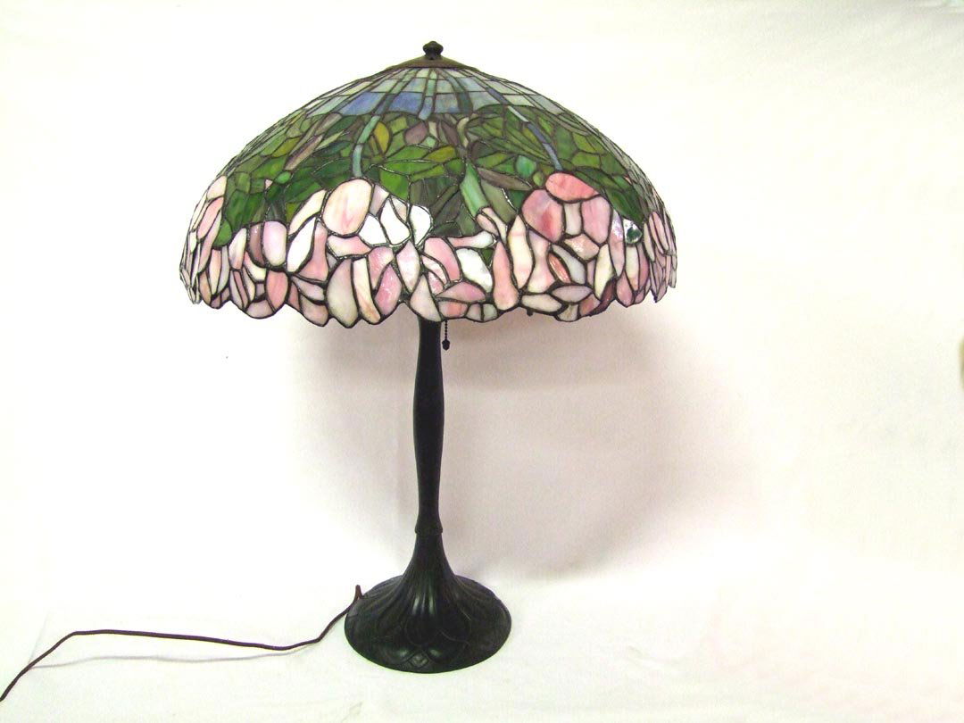 SoldHandel Leaded Lamp23" tall 20 1/2" shade diameter early 20th century base and shade signedSee Sold Price