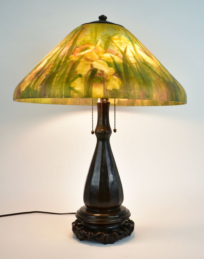 HANDEL REVERSE PAINTED GLASS DAFFODIL LAMP, #585