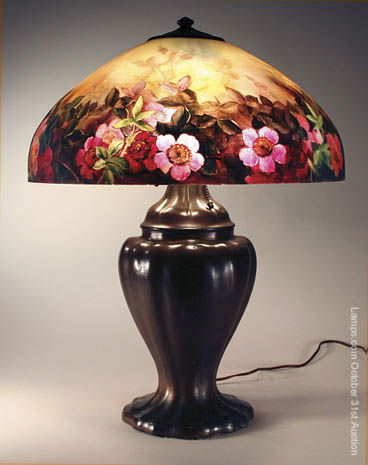 Handel Reverse Painted Lamp Rose Floral