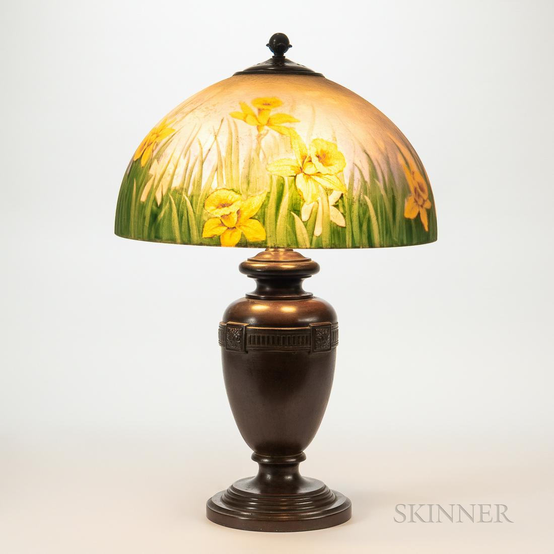 Handel Table Lamp with Daffodil Reverse-painted Shade,