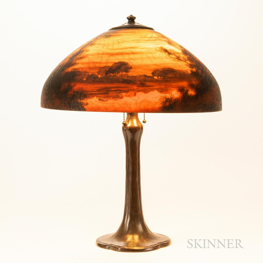 Handel Table Lamp with Sunset Landscape Reverse-painted