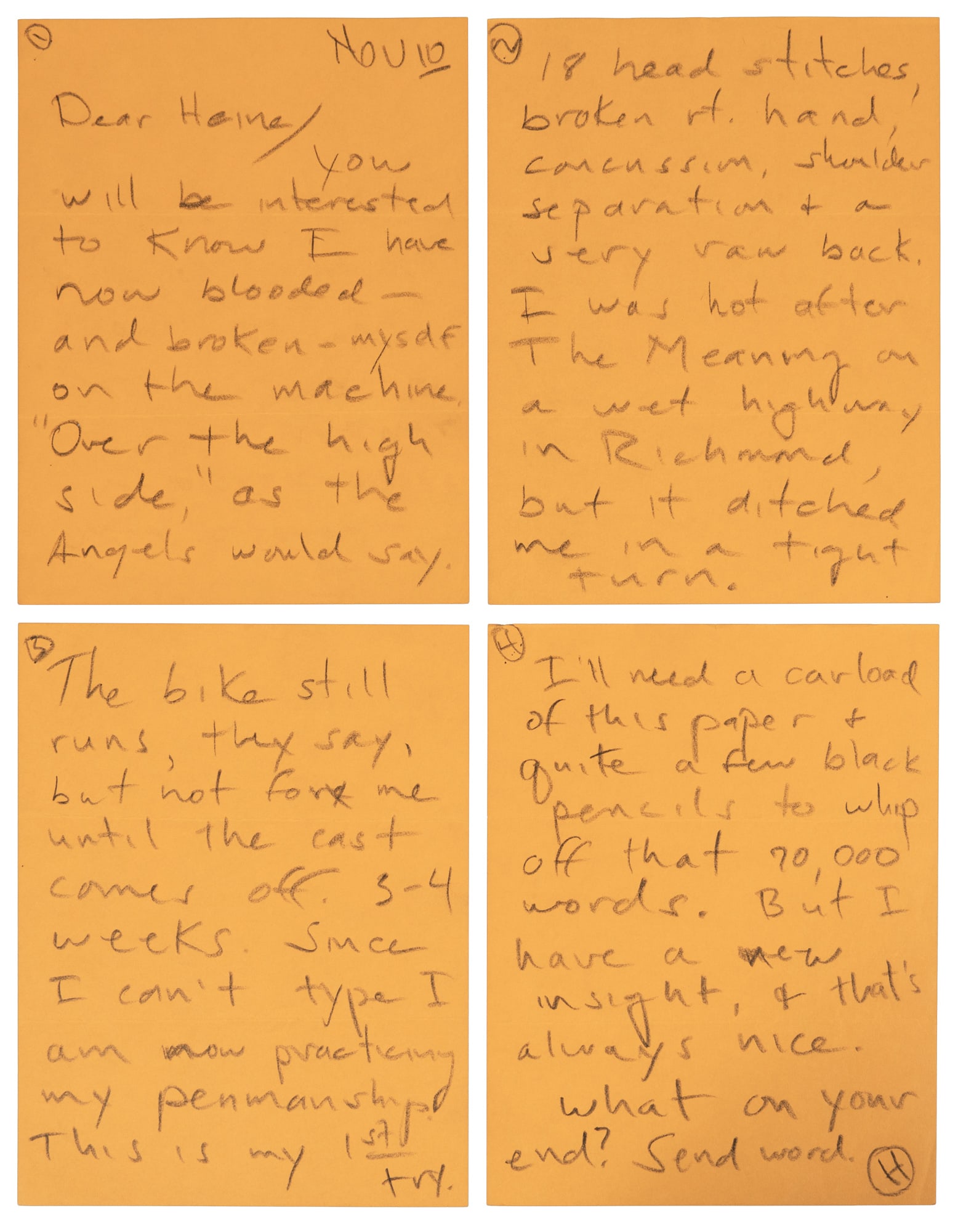 Handwritten letter from Hunter Thompson