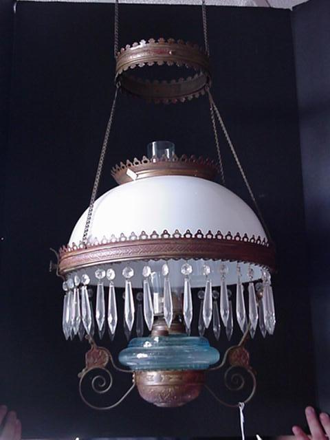 Hanging Parlor Oil Lamp with Prisms