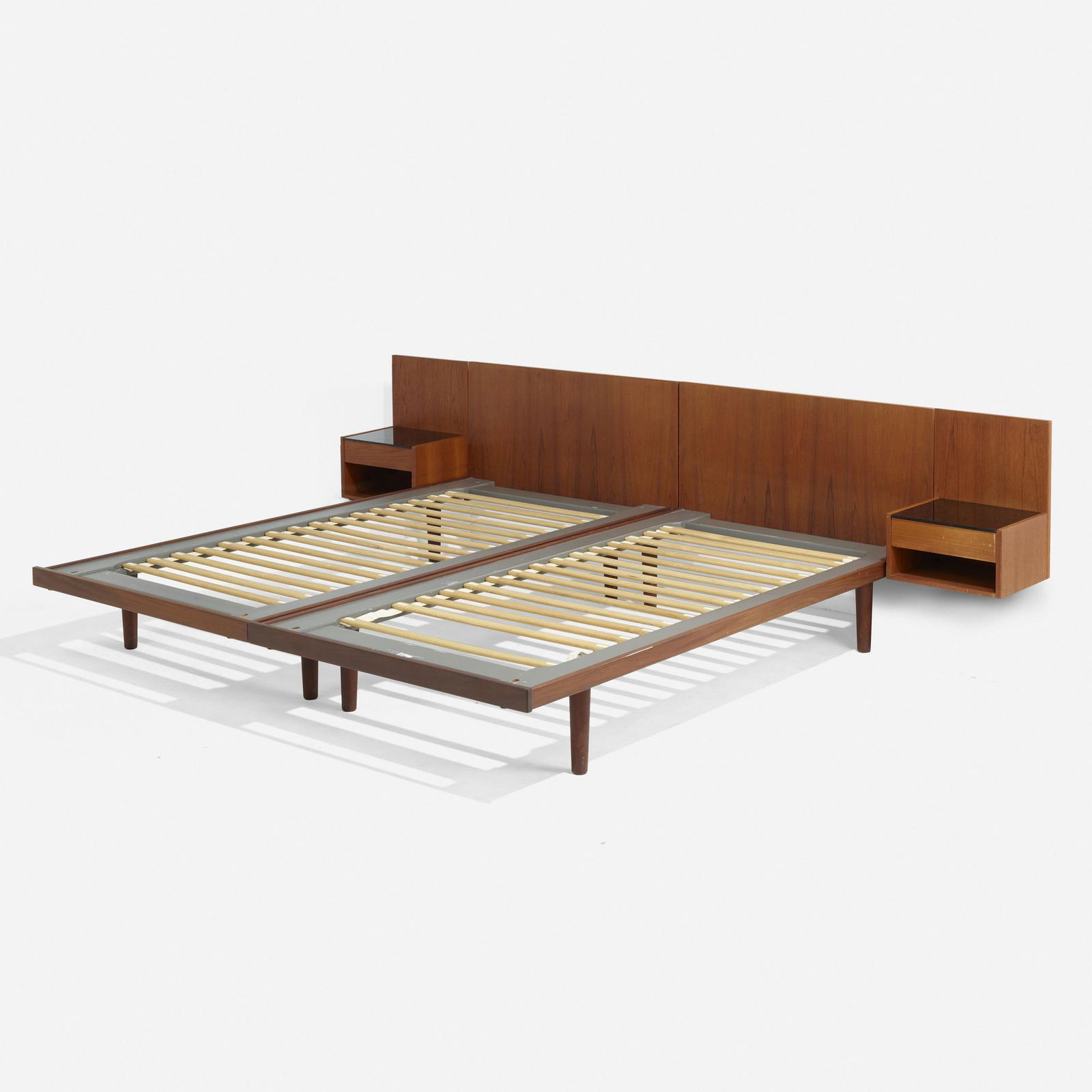SoldHans J. Wegner, Bed, Model GE 705Hans J. Wegner, Bed, Model GE 705Getama, Denmark, circa 1960, teak, glass, skai, 29"h x 111"w x 80.5"dSee Sold Price