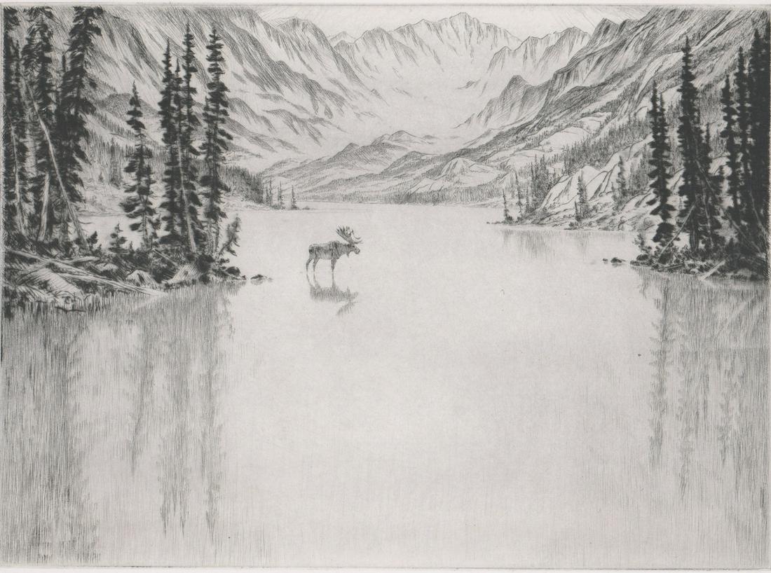 Hans Kleiber Etching [AAA, Moose, Rockies]