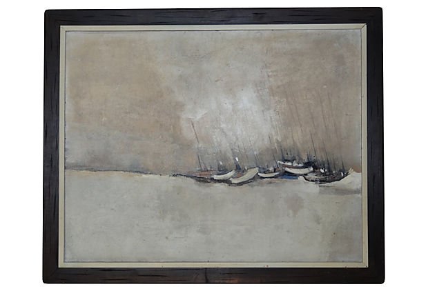 Abstract Coastal Harbor Oil Painting on Canvas Vintage Bohemian Wall ArtMynt Auctions4.4(841)$1002 days Left