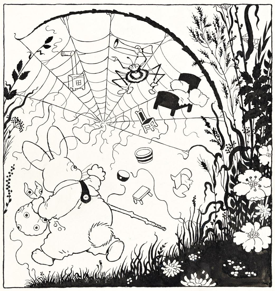 HARRISON CADY (1877-1970) Peter Rabbit busting Spider's cobweb.