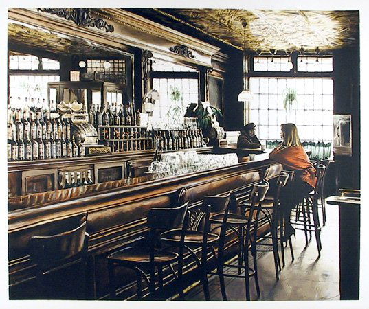 SoldHarry McCormick (NY,NJ,1942-?) oil paintingARTIST: Harry McCormick (New York, New Jersey, 1942 - ???) TITLE: Woman at Bar MEDIUM: oil on canvas CONDITION: Very good. No visible inpaint under UV light. ART SIZE: 37 x 48 inches / 93 x 121 cm FRASee Sold Price