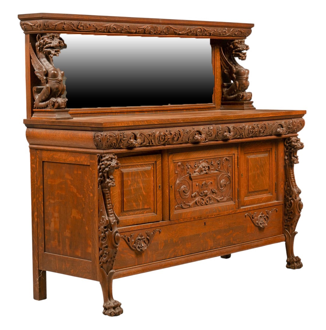 Antique English Victorian Bookmatched Mahogany Mirror Topped Chiffonier CabinetENGLISH JACOBEAN STYLE CARVED OAK FOLDING COURT / BAR CABINETFeb 21, 2026Hand-Carved Wooden Sideboard with Ornate Detailing and Brass HardwareFeb 17, 2026LATE 19TH CENTURY BLACK FOREST CARVED OAK SIDEBOARDFeb 22, 2026AN IMPORTANT LOUIS MAJORELLE "BUFFET DEUX CORPS" SIDEBOARD CABINETFeb 22, 2026"Harriet Ford" Mahogany Sideboard4 days LeftTraditional Mahogany Serpentine Dresser with Tri-Fold MirrorFeb 23, 2026Empire Design Mahogany Sideboard with Brass Accents and Carved Paw Feet2 days LeftAntique French Henry II Mahogany Sideboard with Mythological DetailsMar 02, 2026Renaissance Revival Carved Oak Drop Center Chest of Drawers2 days LeftFrench Louis XV Style Carved Oak Buffet a Deux Corps, 19th c., H.- 93 in., W.- 57 in., D.- 22 1/2Feb 27, 2026English Carved Mahogany Buffet, Ca. 1850, H 42" W 58.5" Depth 20.25"Feb 19, 2026LOUIS XV STYLE CARVED OAK WALL-MOUNTED CONSOLE TABLEFeb 20, 2026FRENCH LOUIS XVI STYLE MARBLE-TOP PANELED MAHOGANY SIDEBOARDFeb 21, 2026French Louis XVI Inlaid Mahogany Sideboard with Marble Top and Mounted MirrorMar 01, 2026Queen Anne Style Mahogany SideboardApr 07, 2026