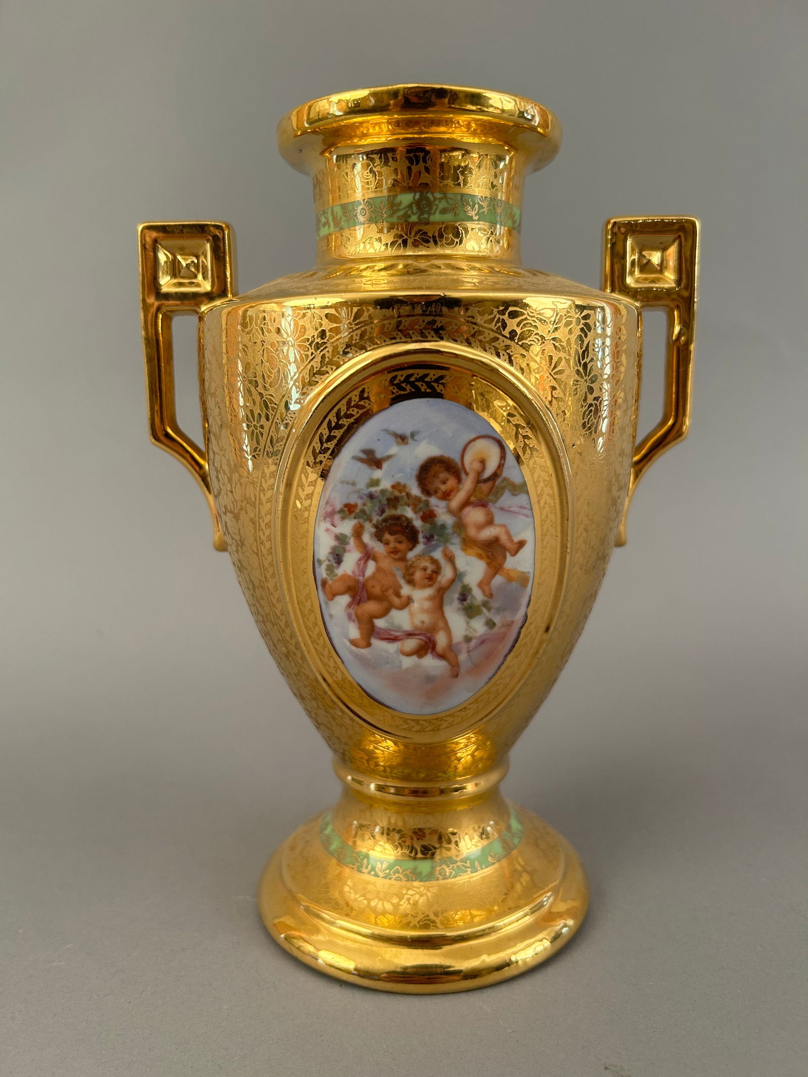 Heavily Gilded Two Handled Vase