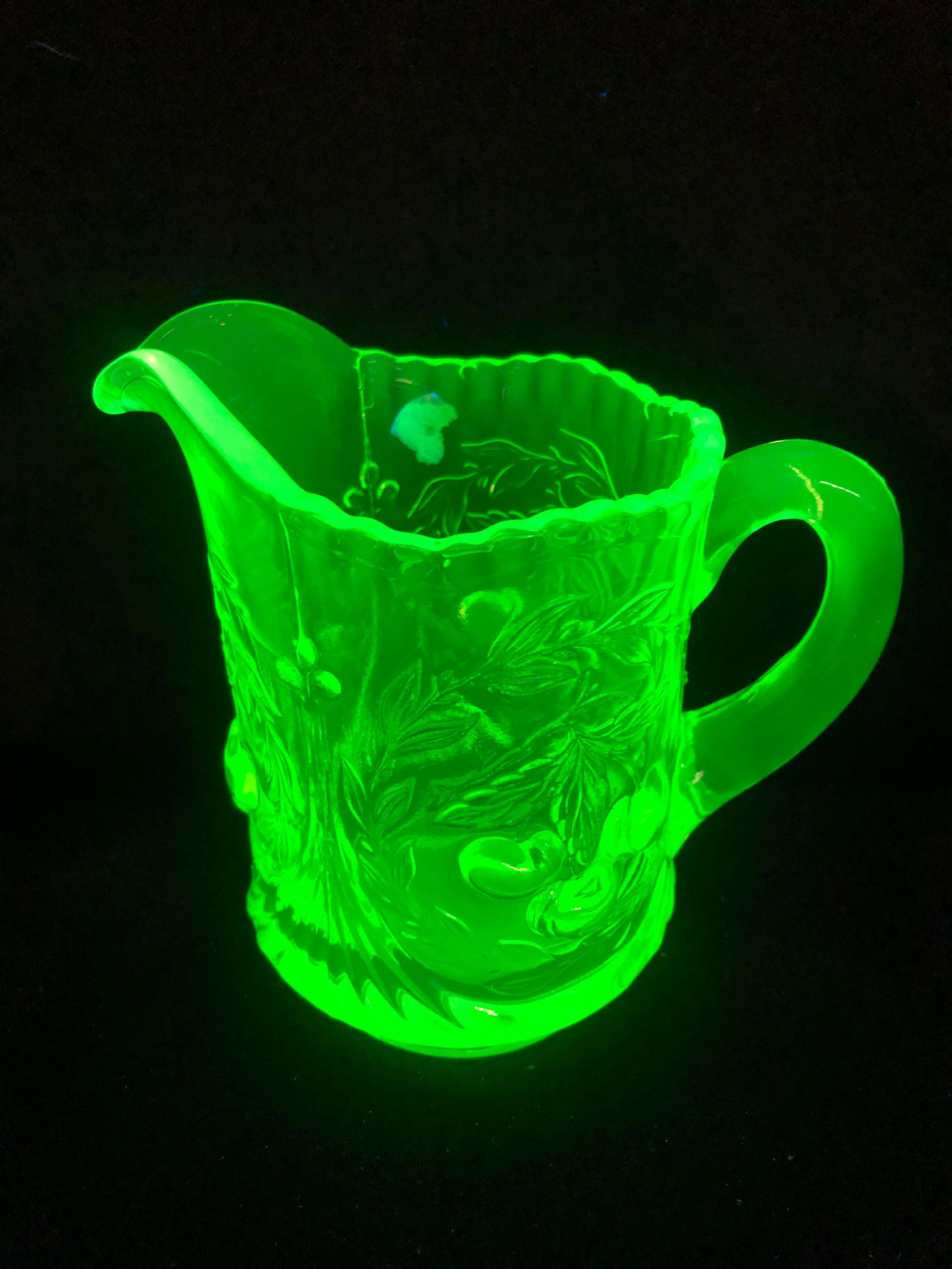 HEAVY VASELINE GLASS PITCHER