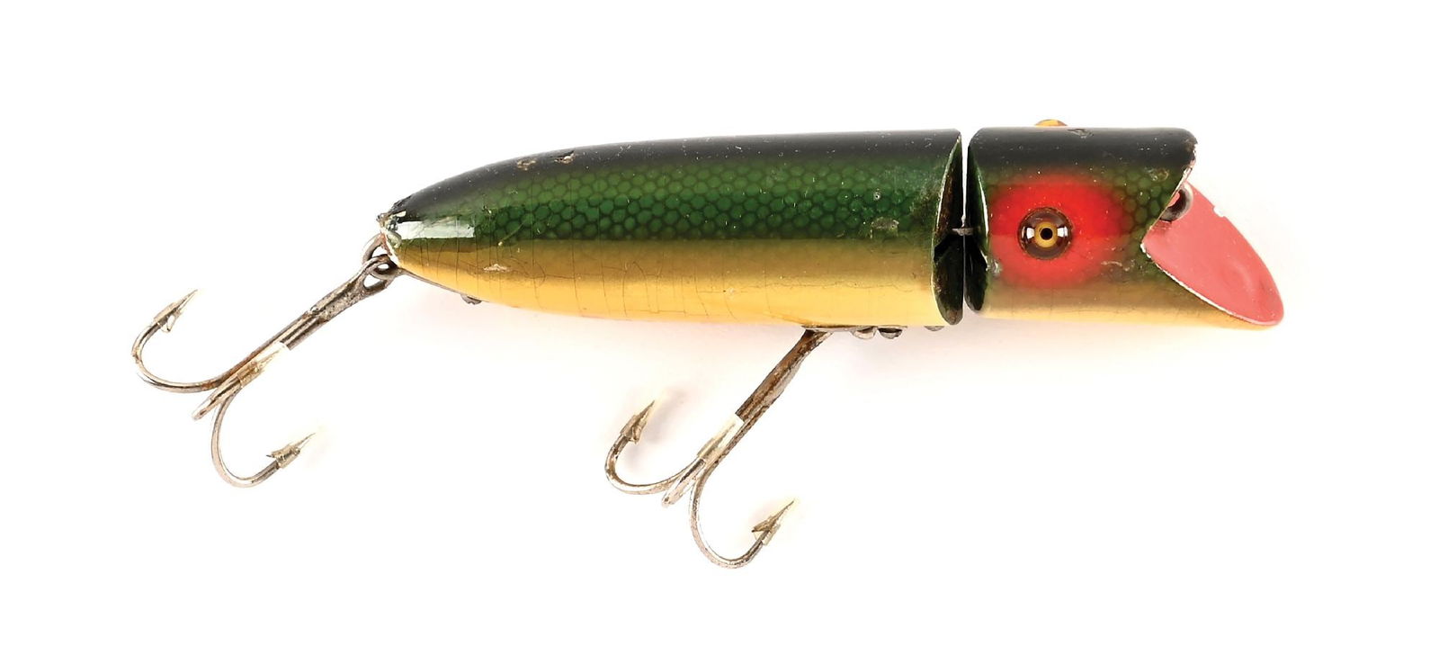LOT OF SALTWATER LURES.Feb 27, 2026Collection Of Vintage Fishing LuresMar 22, 2026A Collection of 9 Rapala and Fishtrap Fishing LuresFeb 22, 2026Brian Clinton (Australia,1940-?) gouache paintingApr 12, 2026Bill Ramsey (US,b 1951) watercolor paintingApr 05, 2026Heddon Baby Dowagiac Vintage Fishing Lure Perch ColorVINTAGE ARTICULATING ENAMELED FISH 14K PENDANT1 day LeftSucker Decoy by Oscar W. Peterson (1887-1951)Feb 21, 2026Monumental Fish-Form Silver-Plated Centerpiece Tray, 30.25 inchesFeb 15, 2026Two Fish DecoysFeb 21, 2026Brook Trout by Mark McNair (b. 1950)Feb 20, 2026Black and Gold Fish DecoyFeb 21, 2026A didactic model of a common carp (Cyprinus carpio), 20th century, German,Feb 24, 2026Over Size Fishing Lure Sporting Goods Store DisplayMar 22, 2026Toy, Lehmann Climbing Monkey, stamped German, Tom 385, P Marke, litho on tin, some paint loss & m...Vintage South Bend Semi Weedless Nip-I-Diddee G910 FO in Orig Box2 days Left