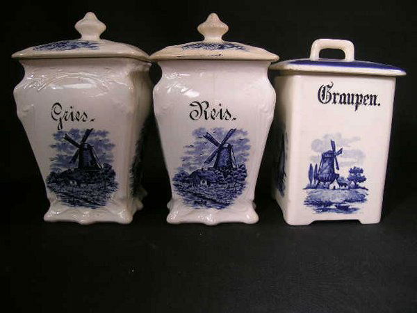 HEDWIG BLUE WHITE CERAMIC COVERED CANISTERS