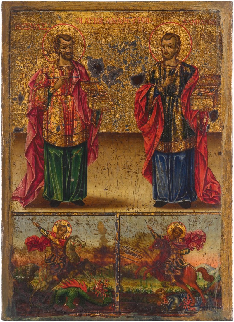 Heiligenikone Griechisch, 19.Jh. Tempera ber