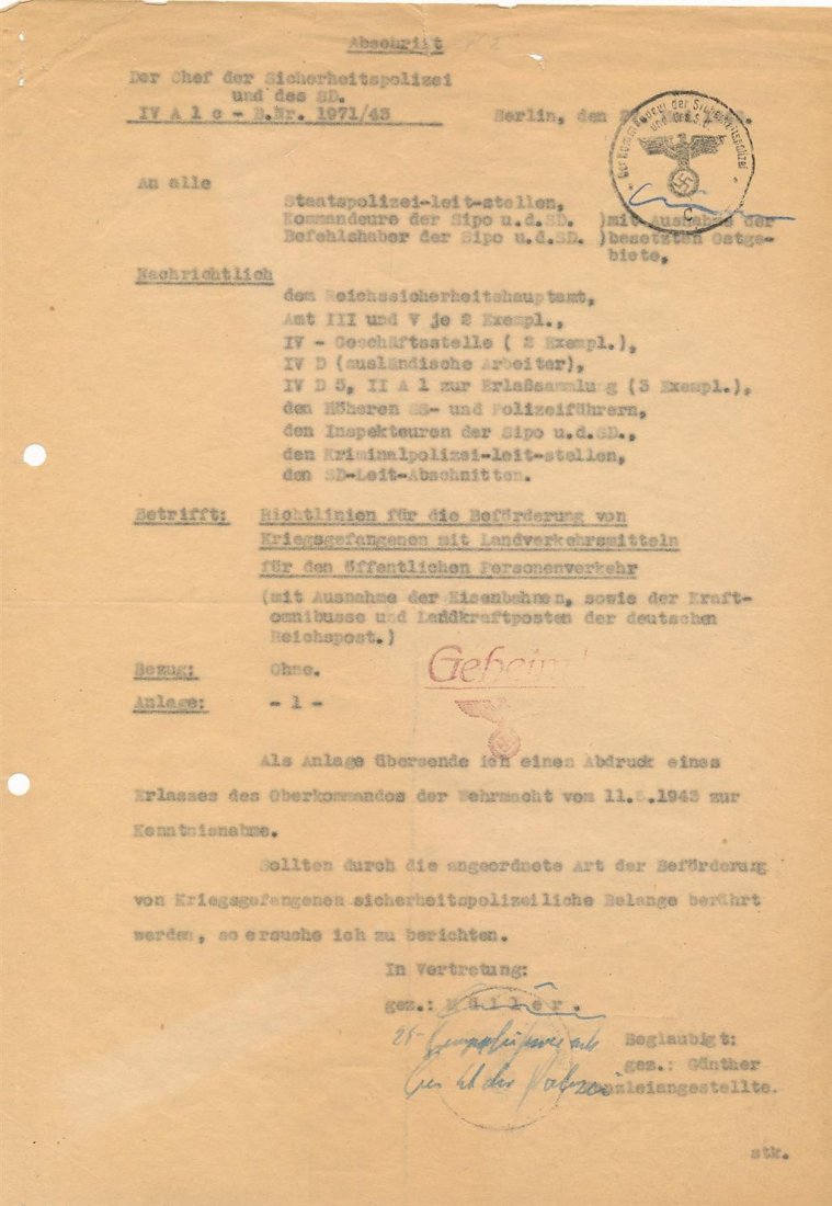 Heinrich "Gestapo" Muller- Rare Signed Document