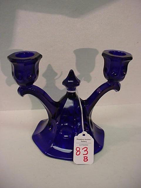 HEISEY Cobalt Thumbprint and Panel Candlestick: 83