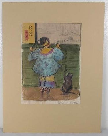 HELEN HYDE HAND COLORED ETCHING ON PAPER