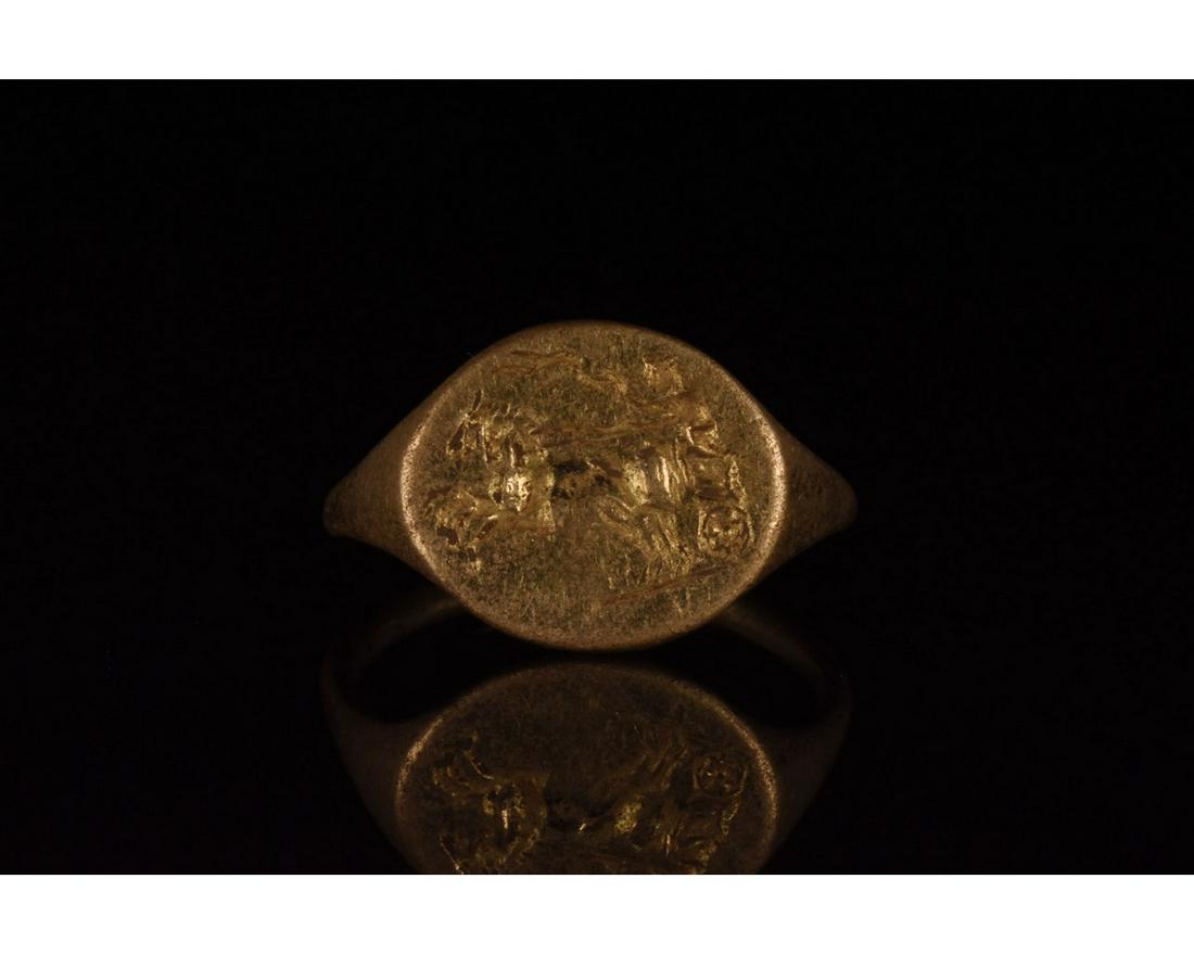 HELLENISTIC GOLD RING WITH CHARIOT - XRF TESTED