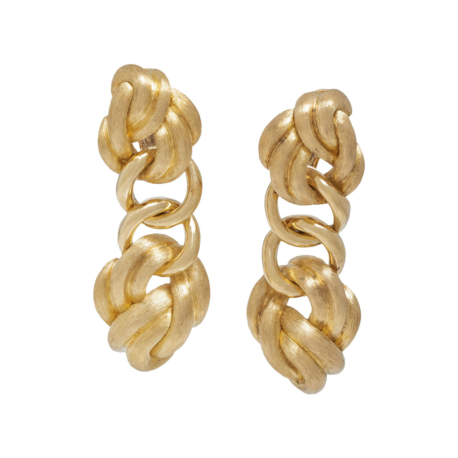 VINTAGE WOVEN KNOT DROP STUD EARRINGS 14K