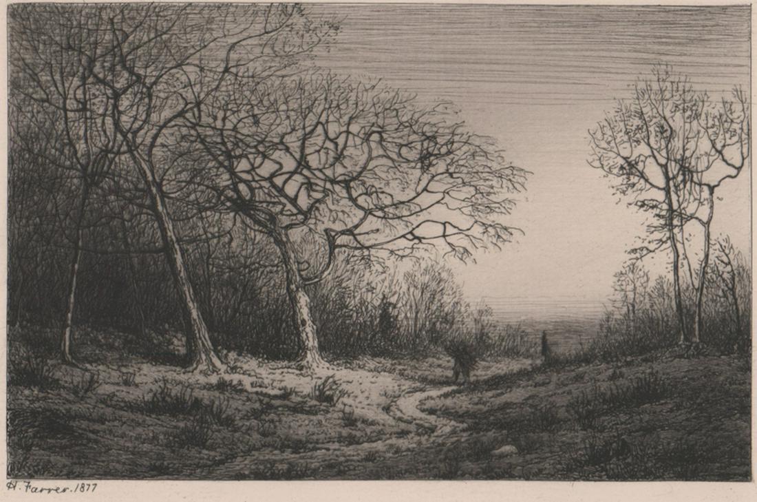 Henry Farrer Etching [Forest scene]