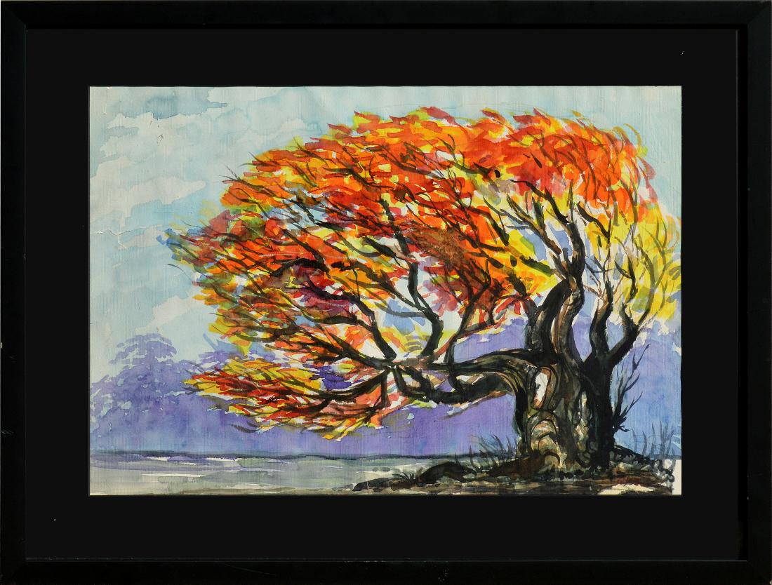 Henry Varnum Poor (American 1887 - 1970), Landscape, watercolor and graphite on paper, 1919, looselyHenry Varnum Poor (American 1887 - 1970), Landscape, watercolor and graphite on paper, 1919, loosely rendered scene of the French countryside, small village and hills, signed and lower right, framed a