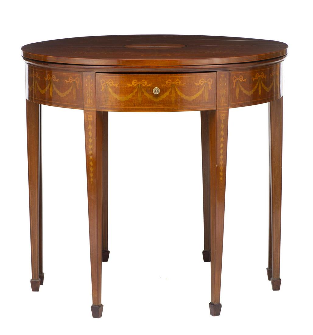 Table bouillotte de style Louis XVI, début du XIXe s., en noyer, pieds cannelés, plateau eGeorge III Mahogany Fold-Over Games TableMar 28, 2026Table de salle à manger de style Directoire, XIXe s., en noyer et placage de noyer, à piedBaker Federal-style Mahogany Tea TableMar 27, 2026ENGLISH CHIPPENDALE STYLE MAHOGANY FLIP-TOP GAMES TABLEMar 28, 2026Queen Anne Mahogany Fold-Over Games TableMar 29, 2026Federal Flame Birch Inlaid Mahogany Fold-Top Card Table, North Shore Massachusetts, Boston or SalemMar 27, 2026Diminutive Louis XV Style Tulipwood and Kingwood Parquetry and Marquetry Writing TableMar 26, 2026TAVOLO DA CENTRO IN LEGNI VARI E DIPINTO, XX SECOLOMar 25, 2026MAHOGANY BRONZE MOUNTED AND INLAID DEMILUNE CONSOLE TABLE THAT OPENS TO A GAMES TABLE C 1940.Mar 24, 2026Federal Serpentine Front Flip Top Games TableMar 26, 2026Elegant Inlaid Mixed Wood Demilune Table French Style 51.5w450 Lots AwayTravailleuse formant table à écrire d'époque Napoléon III, en marqueterie àTable de salle à manger style Regency, Angleterre, XXe s., en acajou et placage d'acajou, àRare Kittinger Early Federal Style Mahogany Pembroke Table7 days LeftFrench Louis XVI Style Walnut Demilune Games Table, 19th c., Closed- H.- 30 1/4 in., W.- 39 1/2 in.,Mar 26, 2026