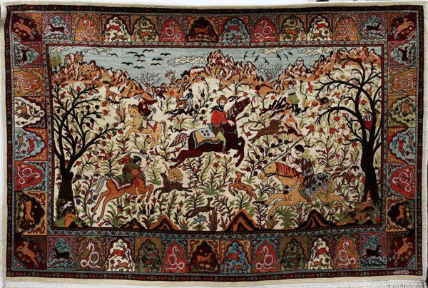 HEREKE SILK HUNTING RUG