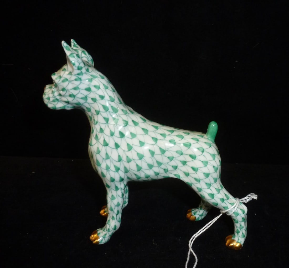 HEREND First Edition Green Fishnet Boxer Dog: