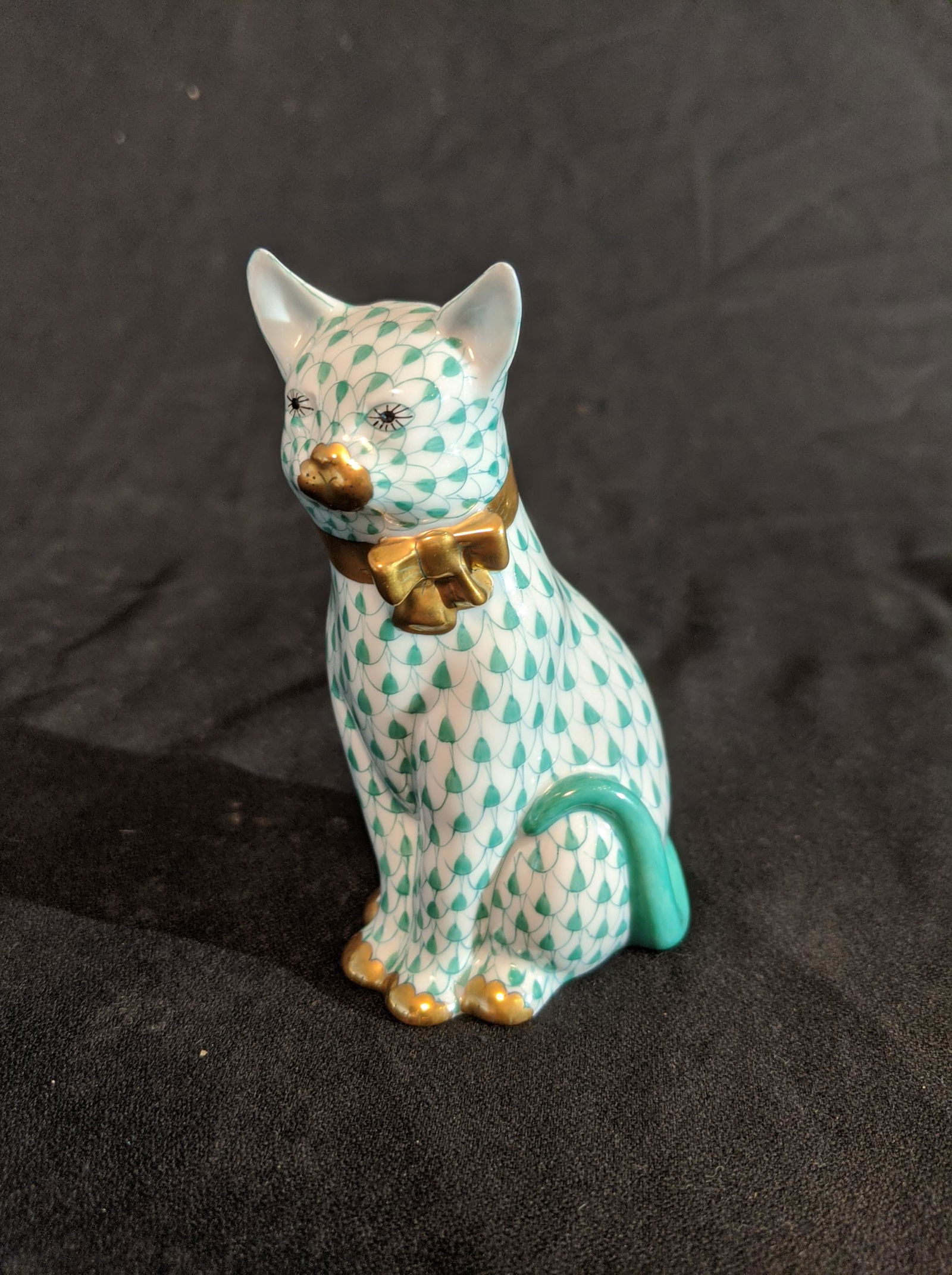 Herend Green & White Cat Figurine