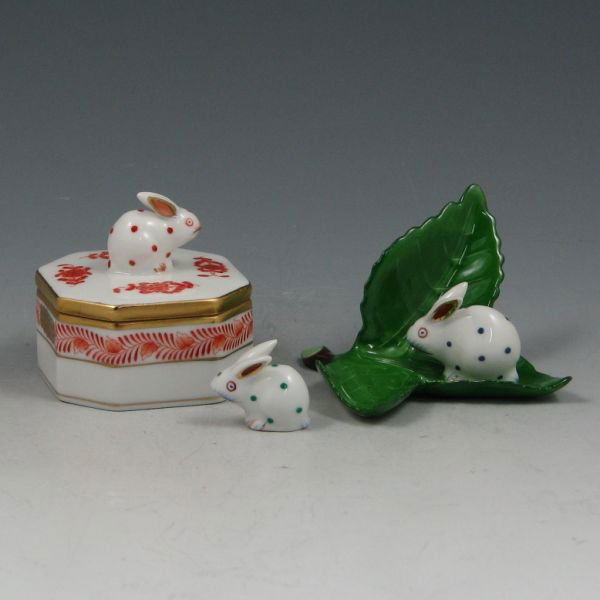 Herend Hand Painted Porcelain Rabbits (3) - Mint