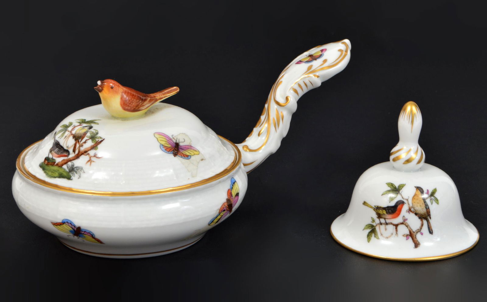 Herend Lidded Ramekin Souffle Pot & Dinner Bell