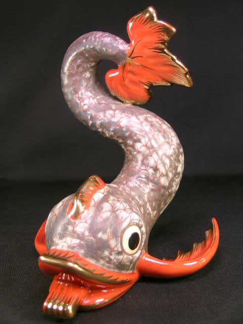 HEREND PORCELAIN DOLPHIN FIGURE HAND PAINTED