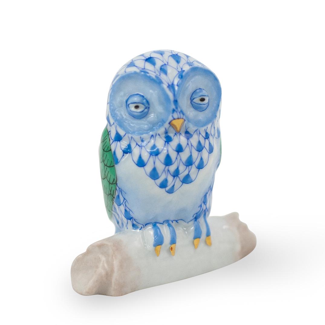 SoldHEREND PORCELAIN BLUE FISHNET OWLblue Herend mark to underside Condition: minor shelf wear to underside. No apparent damages. 5 1/4 inches highSee Sold Price
