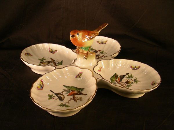 HEREND PORCELAIN FOUR SECTION SERVING DISH